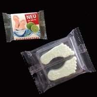 2 Stück Fußbade Sprudeltabletten hygienisch verpackt. Sie erhalten diese Badetabletten nach Ihren individuellen Vorstellungen in Form, Farbe, Gewicht und Duft-Aroma. Selbstverständlich versehen wir die Fußbadetabs auch oder passen die Tabs Ihren individuellen Mailingvorgaben an. Fragen sie einfach bei uns an.