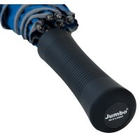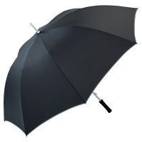 Jumbo® ALU LIGHT Gästeschirm, Handöffner, 75 cm/8-teilig, 14 mm matt-silberner Aluminiumstock mit Fiberglasschienen, Bezug mit silberner Reflexpaspel (gem. DIN EN 471)*, schwarzer spezialbeschichteter gerader Kunststoffgriff, Sicherheitsschieber mit Drucktaste, matte Nickelspitzen, PolyesterPongee Bezug, Windproof-System, ca. 130 cm Ø, ca. 100 cm lang, ca. 530 g, VE 12 Stück, *Produkt wird nach Abverkauf aktueller Lagerbestände auf silberne Reflexpaspel nach EN ISO 20471 umgestellt.