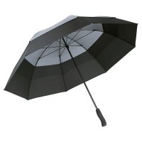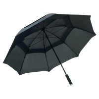 FARE® Exklusiv Design Fiberglas Gästeschirm, (reddot design award Gewinner 2010), TÜV-zertifiziert, Handöffner, 75 cm/8-teilig, 14 mm Fiberglasstock mit Fiberglasschienen in Schwarz, neuer Ventilationsbezug, spezialbeschichteter schwarzer Golf-Design-Griff mit silbernen Endkappen, Sicherheitsschieber, Nickelspitzen, Polyester-Pongee Bezug mit FONEWR Nano-Beschichtung (Abperleffekt, wasser- und schmutzabweisend), Windproof-System, ca. 135 cm Ø, ca. 103,5 cm lang, ca. 660 g, VE 12 Stück