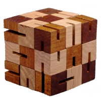 Artikel-Nr: AND800369Geduldspiel aus Holz, ergibt einen Würfel. Einzeln im Baumwollbeutel (96×165 mm).