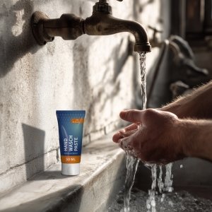 Profi-Handwaschpaste, 50 ml Tube (weiß) mit Klappdeckel. Der konzentrierte, pastöse Profi-Handreiniger mit Doppelwirkung entfernt zuverlässig starke Verschmutzungen wie Öle, Fette, Schmierstoffe, vielerlei Druckfarben, Stäube und natürlich auch einfachen Schmutz besonders hautfreundlich. Ob in Industrie, Handwerk, Garten, Werkstatt oder Hobbykeller: Der Profi-Handreiniger ist universell einsetzbar. Doppelwirkung aus Reinigung und Schutz: Der Profi Handreiniger reinigt porentief mit natürlichen Reibekörnern aus fein vermahlenem und abgerundetem Mehl aus Walnussschalen (keine Kunststoffe). Das komplex wirkendende Tensid-System aus nachwachsenden Rohstoffen ist selbstverständlich gemäß OECD-Screening-Test biologisch abbaubar. • Nachhaltiger Hautschutz • Hochwertige Fettstoffe natürlichen Ursprungs • pH hautneutral • Verstopft nicht den Abfluss • Ohne Silikon und Lösemittel Sparsam im Gebrauch: Nur 3 ml sind ausreichend für eine gründliche Handreinigung. Einfach in die trockenen Hände einreiben, bis sich der Schmutz löst. Etwas Wasser zugeben, gründlich waschen und gut abspülen. Dermatologisch getestet "Sehr gut hautverträglich". Hergestellt in Deutschland. FullbodyPrint: Vollflächige 360° Bedruckung der gesamten Tube inklusive Siegelnaht. Der Druck erfolgt direkt auf die Tube in atemberaubender 4c Fotoqualität (CMYK). Keine extra Druckkosten pro Stück: der Druck auf die Tube ist im Preis bereits inbegriffen. Füllung: 50ml