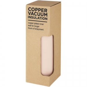 Kupfer-vakuumisolierte Edelstahlflasche mit klarem Design. Die isolierte Konstruktion aus 18/8-Edelstahl verhindert die Bildung von Kondenswasser an der Innenseite der Flasche, und die trendige Pulverbeschichtung macht sie besonders haltbar. BPA-frei, geprüft und zugelassen nach dem deutschen Lebensmittelrecht (LFGB). Auf Phthalate geprüft und zugelassen gemäß den REACH-Vorschriften. Das Fassungsvermögen beträgt 500 ml. Handwäsche empfohlen. Verpackt in einer Geschenkbox aus Recyclingkarton.
