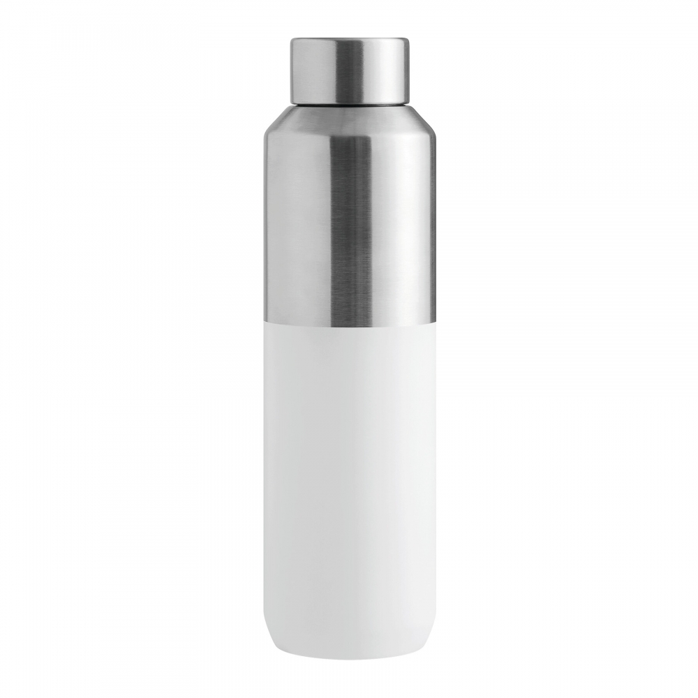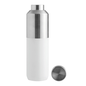Doppelwandige vakuumisolierte Trinkflasche. Die 100% auslaufsichere Flasche wird in einer Geschenkverpackung geliefert. Die Vakuumisolation hält die Getränke länger auf der richtigen Temperatur, bis zu 12 Stunden warm und / oder bis zu 24 Stunden kalt. Die Pulverbeschichtung der Aussenwände verleiht der Flasche ein elegantes Aussehen.