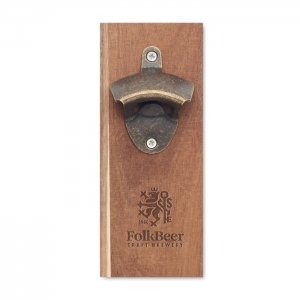 Kapselheber aus Akazienholz und Eisen. Mit starkem Magnet zum Auffangen der Kronkorken und zur Befestigung am Kühlschrank.