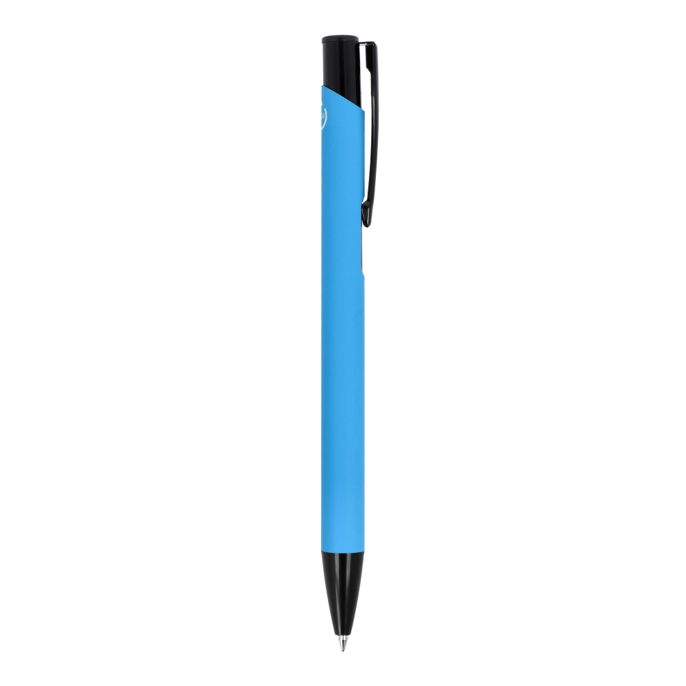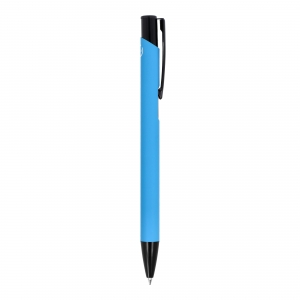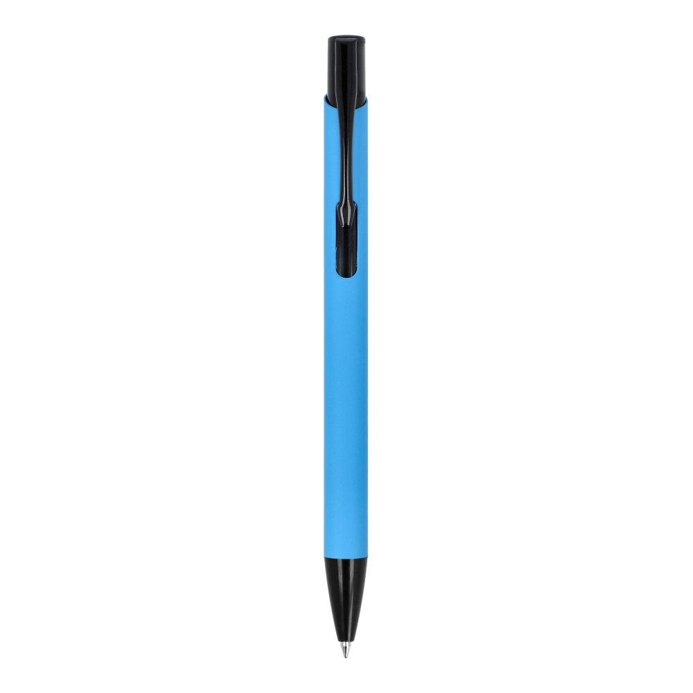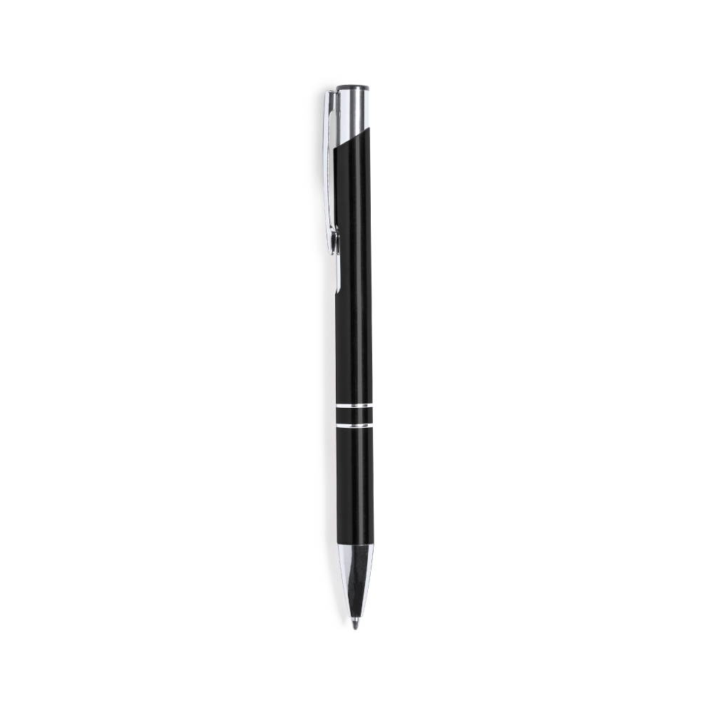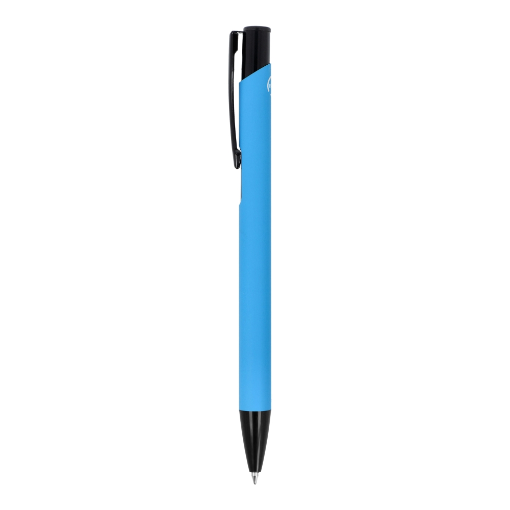 Origineller Kugelschreiber mit Druckknopfmechanismus in elegantem zweifarbigen Design. Gestanzter Aluminiumschaft mit glatter Oberfläche in verschiedenen Farben. Origineller Clip, Ringe und Spitze in Silber. Mit Jumbo-Mine und blauer Tinte.