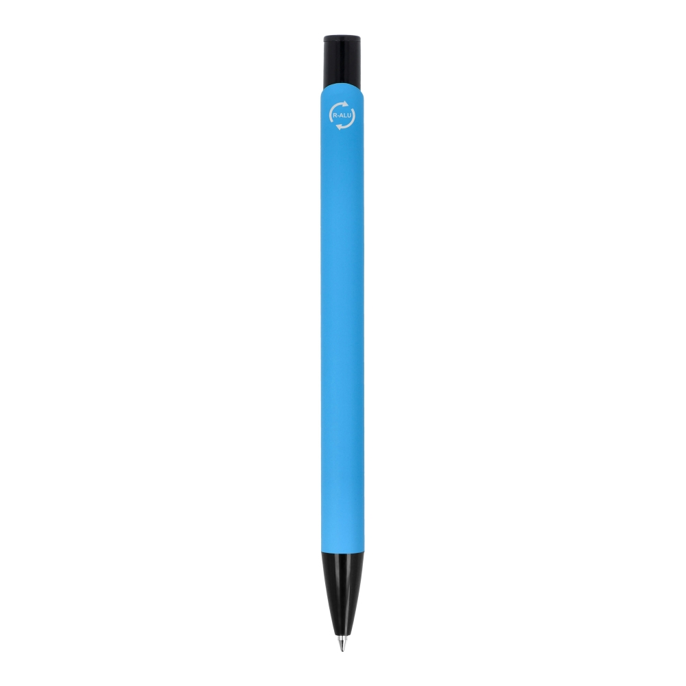 Umweltfreundlicher Kugelschreiber aus recyceltem Aluminium. Druckknopfmechanik, das Gehäuse ist in vielen Metallfarben und verchromten Beschlägen erhältlich. Mit Metallclip und Logo aus recyceltem Aluminium auf der Oberseite des Stiftes. Jumbo-Patrone und blauschreibende Tinte. Recyceltes Aluminium hat seinen Ursprung in der nahezu unbegrenzten Wiederverwendung eines der am besten recycelbaren Materialien, wobei die Qualität des Produkts erhalten bleibt. Diese Eigenschaft macht es zu einem umweltfreundlichen Material recycelten Ursprungs, das leicht wiederverwertet werden kann. Außerdem können neue Materialien und Ressourcen aus den Aufbereitungs- und Abfallprozessen gewonnen werden, wodurch weniger Energie und andere nachhaltige Faktoren verbraucht werden. GRS-Zertifizierung (Global Recycled Standard), die die recycelte Herkunft des für die Herstellung des Produkts verwendeten Materials garantiert.