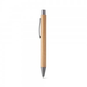 Kugelschreiber aus Bambus mit Clip aus Metall. Blauschreibende Mine. Da das Produkt aus natürlichen Materialien hergestellt wird, können Farbe des Produkts sowie das Druckergebnis von Produkt zu Produkt unterschiedlich sein. Ø11 x 137 mm