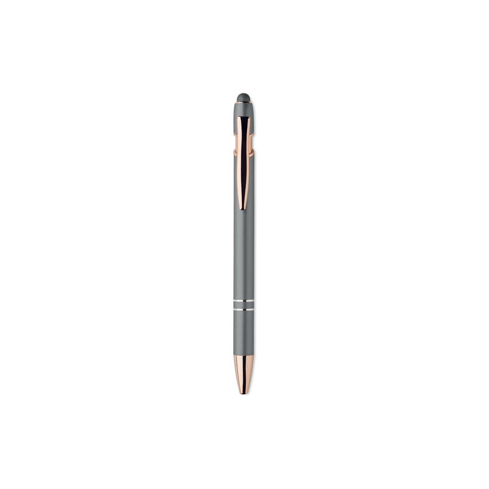 Artikel-Nr: KTO14406002000Dreh-Kugelschreiber mit Stylus von Alexluca. Mit angenehm weichem Metallschaft in elegantem Schwarz. Clip und Spitze in passender Farbe. Präsentiert in einem individuellen schwarzem Etui mit Markenlogo. Blaue Tinte.