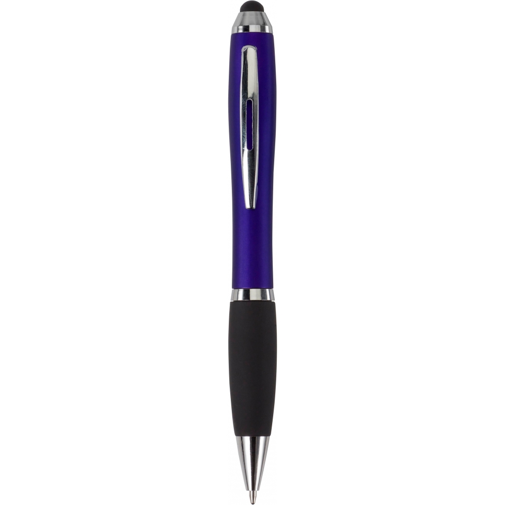 Metall-Kugelschreiber mit Touchpen und glänzender Metallic-Oberfläche, blauschreibend.