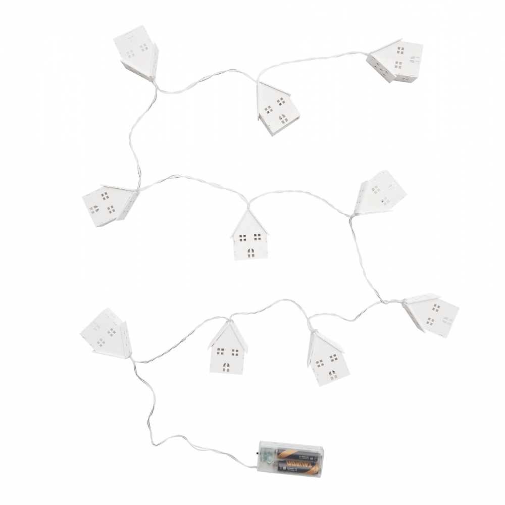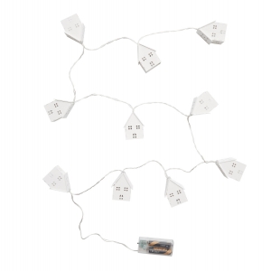 Lichterkette COSY LIGHTS: ca. 168 cm lang, jedes der 10 Holz-Häuschen wird mit einer warmweißen LED beleuchtet, Timerfunktion (6 Stunden an, 18 Stunden aus), batteriebetrieben (2x AA Batterien nicht enthalten), in Box