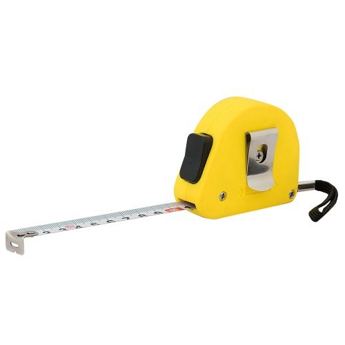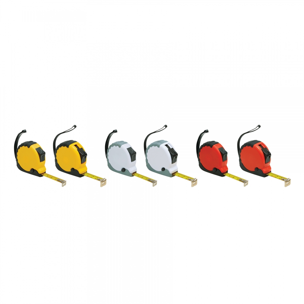 Artikel-Nr: KTO164110050007,5-Meter-Flexometer mit Metallklinge und Verriegelungsmechanismus. Mit weichem Körper in verschiedenen Farben, beschichtet mit einer Schutzhülle aus widerstandsfähigem Gummi, Metallclip für Gürtel und Tragegurt. Präsentiertn in einer individuellen Schachtel.