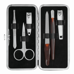 Maniküreset AMELIE, 6-teilig: bestehend aus Nagelschere, Nagelfeile, Pinzette, Nagelschaber, großem und kleinem Nagelknipser, im rechteckigen Etui mit Seitknopfverschluss