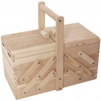 Aus Holz. Mit Tragegriff und drei geräumigen Fächern.