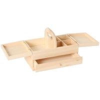Aus Holz. Mit Tragegriff und fünf geräumigen Fächern.