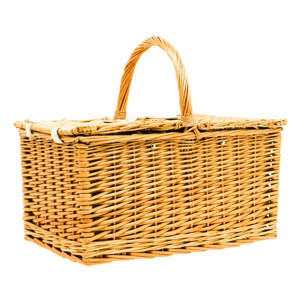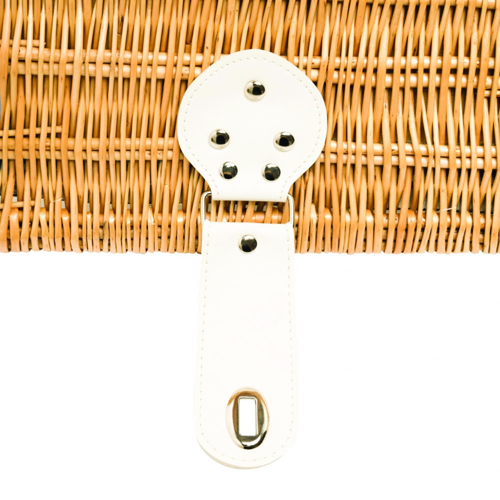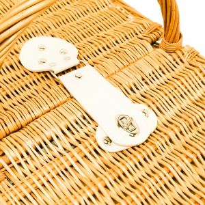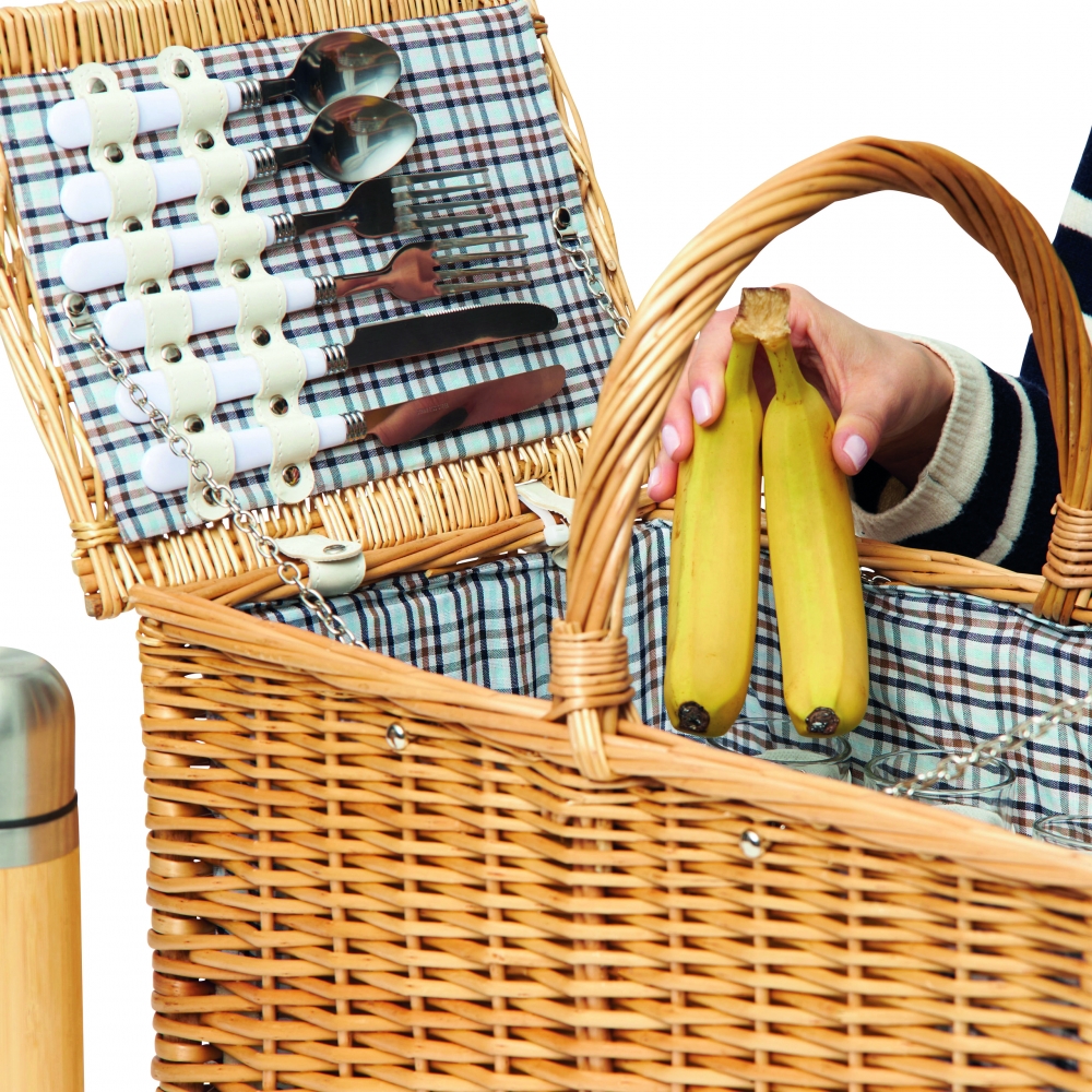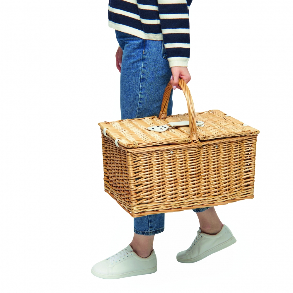 Weiden-Picknickkorb STANLEY PARK für 4 Personen: inkl. Edelstahl-Besteck mit Kunststoffgriffen, Tellern aus Keramik, Gläsern, Stoffservietten und Kellnermesser, innen mit Befestigungsgurten, außen mit Tragegriff und Drehverschluss