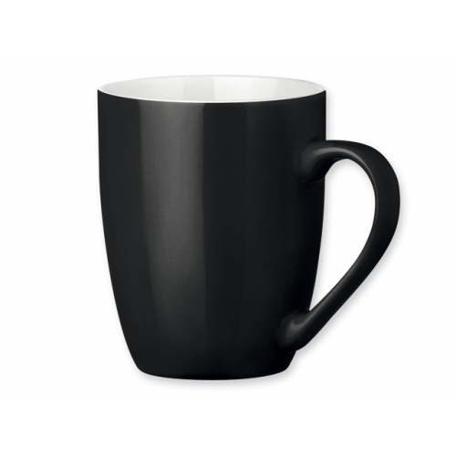 Formschöne Tasse aus Keramik (Fassungsvolumen 250 ml) mit integriertem Löffel der farblich auf die Innenfarbe der Tasse abgestimmt ist. Ihre Werbung bringen wir rechts oder links vom Henkel an.