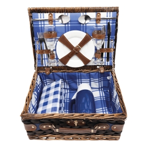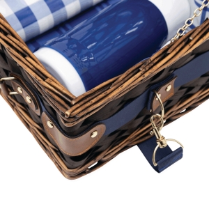 Picknickkorb CENTRAL PARK für 2 Personen: inkl. Edelstahl-Besteck, Porzellanteller, Sektgläser aus Glas, Isolierkanne mit Becher, Tischdecke, mit Schultergurt, Tragegriff und Drehverschluss