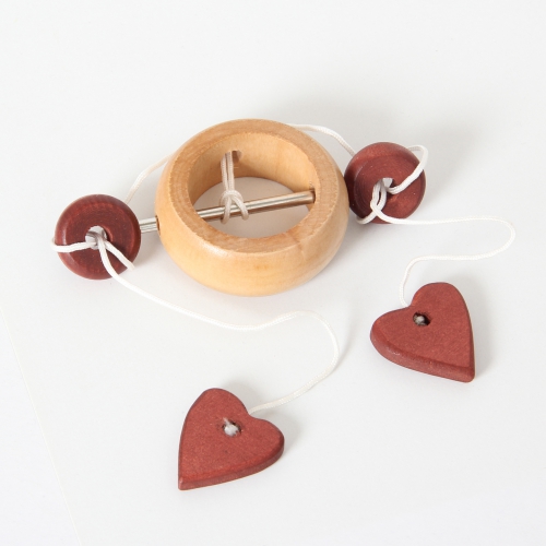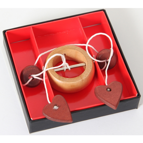 Puzzlegröße: 10 x 6 x 2 cm. In Geschenkbox. Clevere Denksportaufgabe für Klein und Groß. Es gilt, die Herzen zu vereinen oder vom Rest zu trennen. Ab 8 Jahren. Achtung! Nicht geeignet für Kinder unter 36 Monaten.