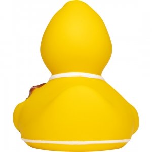 Hier kommt eine Badeentchen in geheimer Mission. Um nicht gleich gesehen zu werden, hat es sein leuchtend gelbes Gefieder geschickt mit einem Camouflagemuster und deckenden Farben umhüllt. Wie die geheime Mission lautet? Bringe die Menschen zum Lächeln. Wir sagen: Das wird ihr mühelos gelingen.