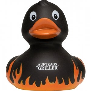 Unsere originellen Produkte können mehr, als nur Werbebotschaften übermitteln: Durch ihre hohen Sympathiewerte eignen sie sich beispielsweise hervorragend als neues Accessoire in Ihrem Sortiment. Sie passen außerdem perfekt in ein Geschenkset. Diese Ente ist wirklich der Burner: tiefschwarz und heißes Flammen-Design machen sie zum wilden Hingucker. Wer sich aus der Masse abheben möchte, liegt bei diesem brandheißen Model genau richtig!