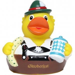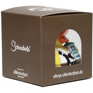 Jo mei, des is a schene Ent‘! In ihrer Krachledernen schaut die Oktoberfest™ Ente "Bavaria" stets fesch aus - ein echtes Prachtexemplar mit Edelweiß-Stickerei, abgerundet mit dem Trachtenhut mit Gamsbart. So geht’s los und direkt auf die Festwiese! Eine Maß in einem, die Weißwurst im anderen Flügel und einzeln verpackt in einer hochwertigen Geschenkverpackung ist die Quietsche-Ente das perfekte Andenken und eine bleibende Erinnerung an das schönste und größte Volksfest der Welt! Lizenzprodukt - Oktoberfest™ ist eine Marke der Landeshauptstadt München.