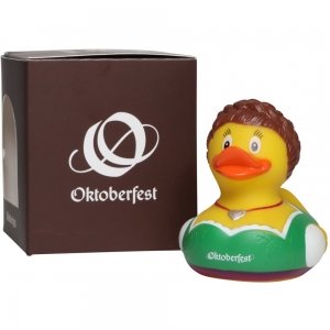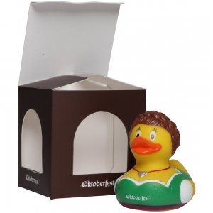 Im farbenfrohen Dirndl mit liebevollen Details verkörpert diese offiziell lizenzierte Quietsche-Ente das besondere Flair Süddeutschlands. Ob als Sammlerstück oder originelles Souvenir – die Oktoberfest™ Ente "Dirndl" sorgt für gute Laune und bleibt lange im Gedächtnis. Jede Ente ist einzeln verpackt und eignet sich ideal zum Verschenken. Lizenzprodukt – Oktoberfest™ ist eine Marke der Landeshauptstadt München.