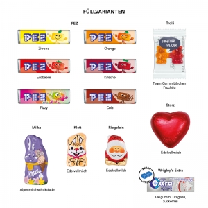 Süßigkeiten wie Bonbons oder Schokolade mit personalisierten Verpackungen sind ebenfalls beliebte Give-aways. Sie ziehen Besucher an und hinterlassen einen positiven Eindruck. Die Verpackungen bieten Platz für das Logo und können mit einer kurzen Botschaft versehen werden.