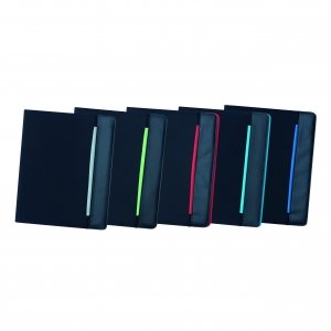 Dokumentenmappe SESSION im DIN-A4-Format: inkl. Schreibblock, Stifteschlaufe, diverse Einsteckfächer, Metallhaken mit farbig-elastischem Verschlussband