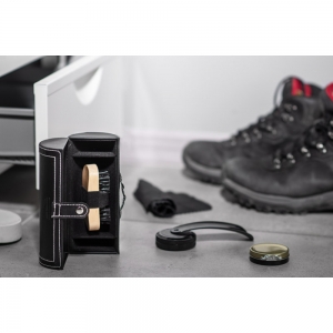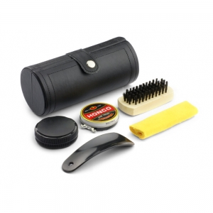 Artikel-Nr: OCBKC1050-175-teiliges Schuhputzset in einer Metalldose. Das Set beinhaltet ein gelbes Poliertuch, einen Schuhlöffel, eine Schmutzbürste, eine kleine Bürste für die feinen Details und eine farblose Schuhcreme.