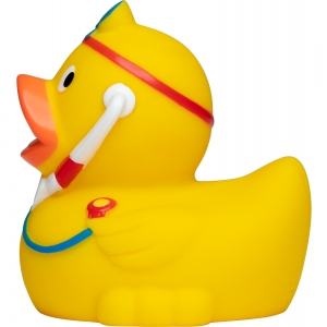 Die Doktor Ente sorgt sich sehr um Ihr Wohlergehen, mit Stethoskop und Kopfleuchte ausgestattet, kann sie jedes noch so kleine Wehwehchen ausfindig machen und behandeln. Und: Sie macht sogar Hausbesuche in Ihrer Badewanne!