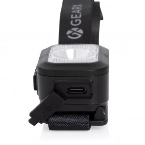 Die Stirnlampe mit verstellbarem und strapazierfähigem Gummiband verfügt über eine 100 Lumen starke LED und eine 150 Lumen starke COB-Leuchte. Die Leuchte kann vom Band abgenommen werden und über einen Magneten zur Beleuchtung an magnetischen Oberflächen befestigt werden. Ein Akku ist integriert und kann über einen vor Spritzwasser geschützten USB-C Port geladen werden. Die Leuchtzeit beträgt circa 2h.