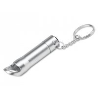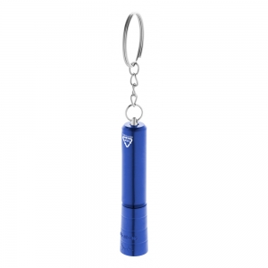 Mini-Taschenlampe aus recyceltem ABS-Kunststoff mit 1 LED, eleganter Metallic-Oberfläche und Metallschlüsselring. Inkl. Knopfzellenbatterie.