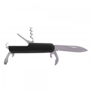 Taschenmesser mit 5 Funktionen. Material: Edelstahl, Griffe aus Aluminium.