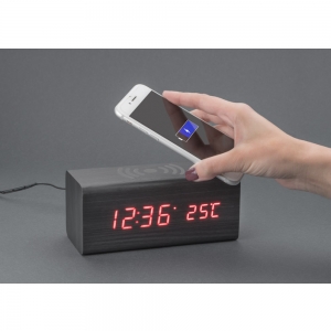 Die CORNELL-Uhr ist eine Kombination aus einer Digitaluhr in einem eleganten Gehäuse mit Induktionsladegerät. Es ist ein Gadget, das auf einem Schreibtisch gut aussieht und sehr praktisch ist. Ein Netzkabel ist im Set enthalten. Eine Uhr mit Kalender, Wecker und Temperaturfunktion. Warten Sie nach dem Anschließen des Geräts etwa 1 Minute, um das elektromagnetische Feld zu stabilisierenUm induktives Laden zu verwenden, verbinden Sie das Gerät mit dem mitgelieferten Kabel (nur die Uhr arbeitet mit Batterieversorgung).