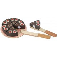 Inhalt: Tortenplatte, Messer, Tortenheber, sechsteiliger Kuchen. Die Kuchenteile haften dank Klettverschluss aneinander. Alles aus Gummibaumholz. Ab 3 Jahren. Achtung! Nicht geeignet für Kinder unter 36 Monaten.