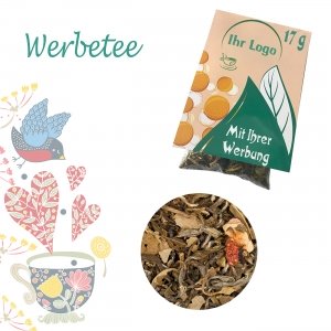 Marken-Tee als Werbegeschenk aus der YuboFiT® Tee Manufaktur. Das cremig-fruchtige Verwöhnprogramm. Eine Tasse mit dem verführerischen Aroma von Erdbeere und Sahne