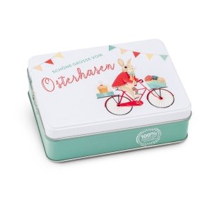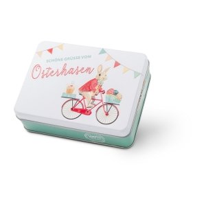Geschenkartikel / Präsentartikel: Hasenvater auf dem Fahrrad - Pralinendose mit 125 g