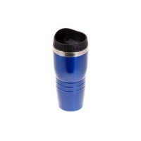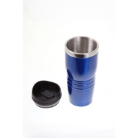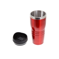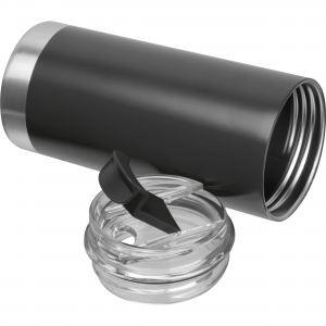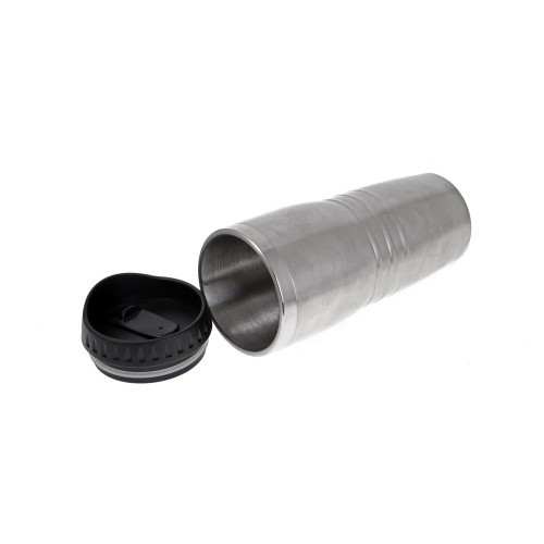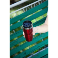 Isolierbecher aus Edelstahl / farbig lackiertem Kunststoff, doppelwandig, mit Deckel und verschließbarem Mundstück, Inhalt ca. 400 ml.