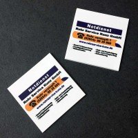 Hochwertiger, hochflexibler PVC Untersetzer mit Werbedruck. Maße: 10 cm x 10 cm