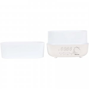 Der 4-in-1 Aroma Luftbefeuchter vereint vier wichtige Funktionen in einem schlanken Gerät: Luftbefeuchter, Lautsprecher, Uhr und Wecker. Er bietet flexible Diffusionsmodi, die einen kontinuierlichen Betrieb oder zeitgesteuerte Einstellungen für 1, 3 oder 6 Stunden ermöglichen, mit automatischer Abschaltung, wenn der Tank leer ist. Der integrierte 12W Bluetooth®-Lautsprecher ermöglicht es Ihnen, Musik direkt von Ihren Geräten zu streamen und liefert einen satten Klang. Das Display auf der Vorderseite zeigt die Uhrzeit mit hellen weißen LED-Punkten klar an, während der integrierte Wecker das Einstellen der Weckzeit vereinfacht. Mit einem Tank von 360 ml und einer Reichweite von 15 bis 25 m² sorgt er für eine angenehme Atmosphäre. Das Gerät ist mit weniger als 35 dB sehr leise und verfügt über eine 7-farbige LED-Beleuchtung, die je nach Stimmung eingesetzt werden kann. Leistung: 12 W, 100–240 V. Inklusive Adapter.
