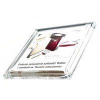 Ein Zahlteller der besonderen Art. Der Kunststoff-Zahlteller mit großer Werbefläche. In dem Zahlteller lassen sich nach Belieben kleine Objekte und verschiedene Druckeinleger platzieren. So lässt sich der Zahlteller jeweils zur wechselnden Werbekampagne entsprechend bestücken. Material: Glas 2mm + Polystyrol