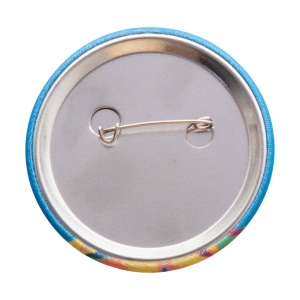 Großer Button-Anstecker mit vollfarbiger Bedruckung auf Einleger aus RPET Polyester. Der Preis ist inklusive Sublimationsdruck. Mindestmenge: 100 Stk.