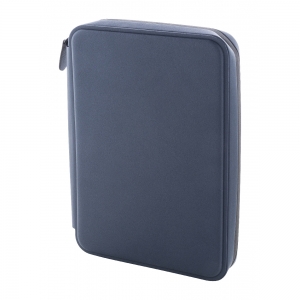 A4 Dokumentenmappe mit Notizblock (20 Seiten, liniert), Stiftschlaufe und Visitenkaretnfach. Material: Kunstleder.