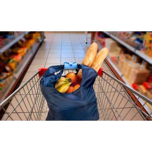 Faltbare Einkaufstasche aus robustem 210D Polyester mit Tragehenkeln. Der Werbeaufdruck erfolgt direkt auf die Tasche. Für 2C oder mehr, Preise auf Anfrage.