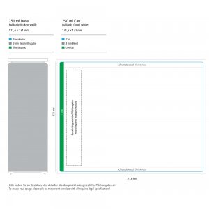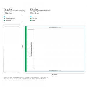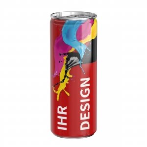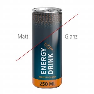 Material: Dose: Aluminium; Sleeve-Folie: weiß oder Dose: Aluminium; Sleeve-Folie: transparent oder Dose: Aluminium; Klebeetikett: PP-Folie, weiß, glänzend, selbstklebend
