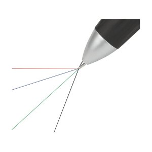 Mehrfarbiger Stift aus widerstandsfähigem recyceltem ABS. Mit Griff mit Gummioberfläche. 4-in-1 mit einziehbarem Druckmechanismus. Von 4 Patronen in blauer, roter, schwarzer und grüner Tinte. Mit markantem RABS-Logo.