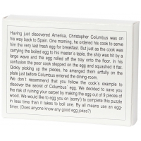 Christoph Kolumbus liebte sein Frühstücksei. Doch sein Koch, ein tollpatschiger Plattfußindianer, hat es fallengelassen. Zaubern Sie aus neun Teilen ein Ei! Achtung! Nicht geeignet für Kinder unter 36 Monaten.