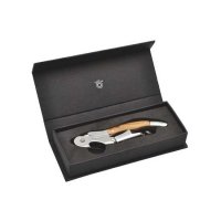 Bestehend aus Flaschenverschluss, Tropfring und Kellnerbesteck aus Metall mit Holzapplikation, im Geschenkkarton