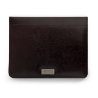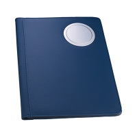 Konferenzmappe aus PU, ca. DIN A4-Format, mit 4 Einsteckfächern, Stifthalter (ohne Stift), Metallplätchen für Gravuren und Schreibblock mit 25 linierten Blättern.