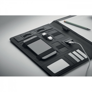 Konferenzmappe A4 mit Magnetverschluss, Notizblock, Fach für Tablet, Smartphone und USB, 5 Einsteckfächer für Visitenkarten, Powerbank 4000 mAh, Notizblock